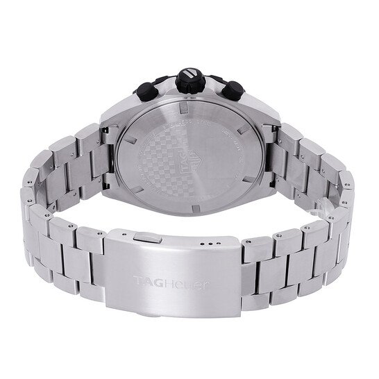 Silver-tone stainless steel case and bracelet. Black stainless steel bezel. Red dial with silver-tone hands and index-Arabic numeral hour markers. Minute markers around the outer rim. Dial Type: Analog. Luminescent hands and markers. Date display at the 4 o’clock position. Chronograph – three sub-dials displaying: 60 second, 30 minute and 1/10th of a second. Quartz movement. Solid case back. Round case shape, case size: 43 mm, case thickness: 12.4 mm. Fold over clasp with a safety release. Water resistant at 200 meters / 660 feet. Functions: chronograph, date, hour, minute, second. Formula 1 Series. Sport watch style. Watch label: Swiss Made. Tag Heuer 43mm Formula 1 Chronograph Quartz Red Dial Men’s Watch CAZ101AN.BA0842.